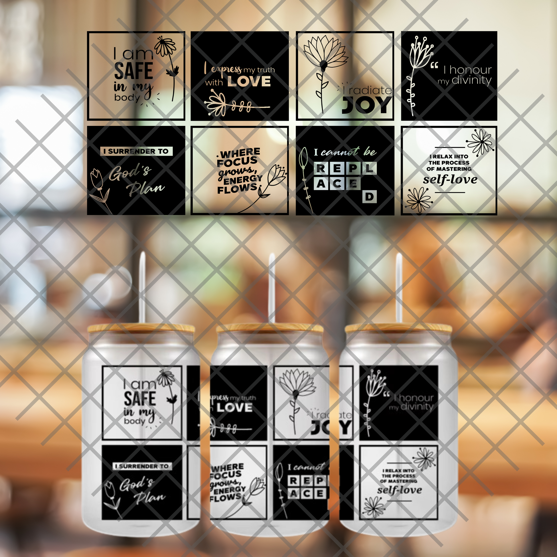 This listing is for one (1) UV DTF adhesive cup decal. (Cup not included)