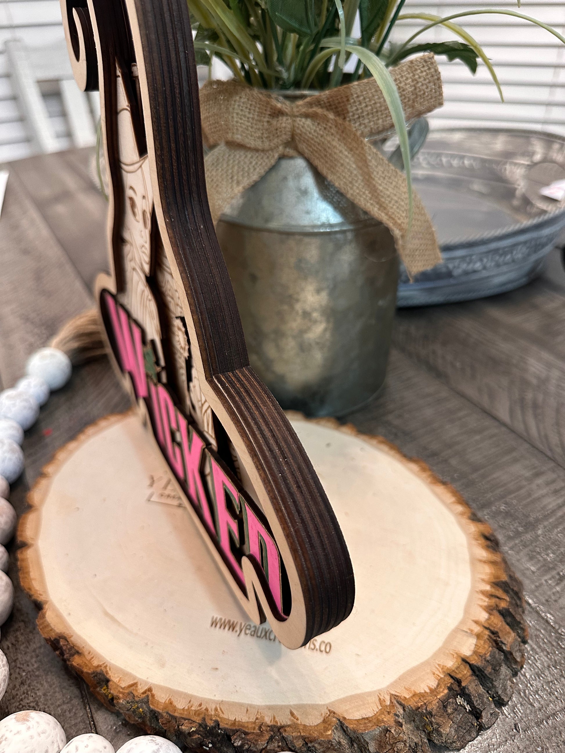 Display your passion for Wicked with this striking 3D wood layered sign. Meticulously crafted from premium wood, each layer is precisely cut and stacked to create impressive dimensional depth and visual complexity. The multi-layered construction adds sophistication to any space, whether displayed on a shelf, wall, or desk. This artisan-quality piece celebrates the iconic musical with artistic flair. Perfect for collectors, theater enthusiasts, and anyone seeking distinctive home décor that makes a bold statement.