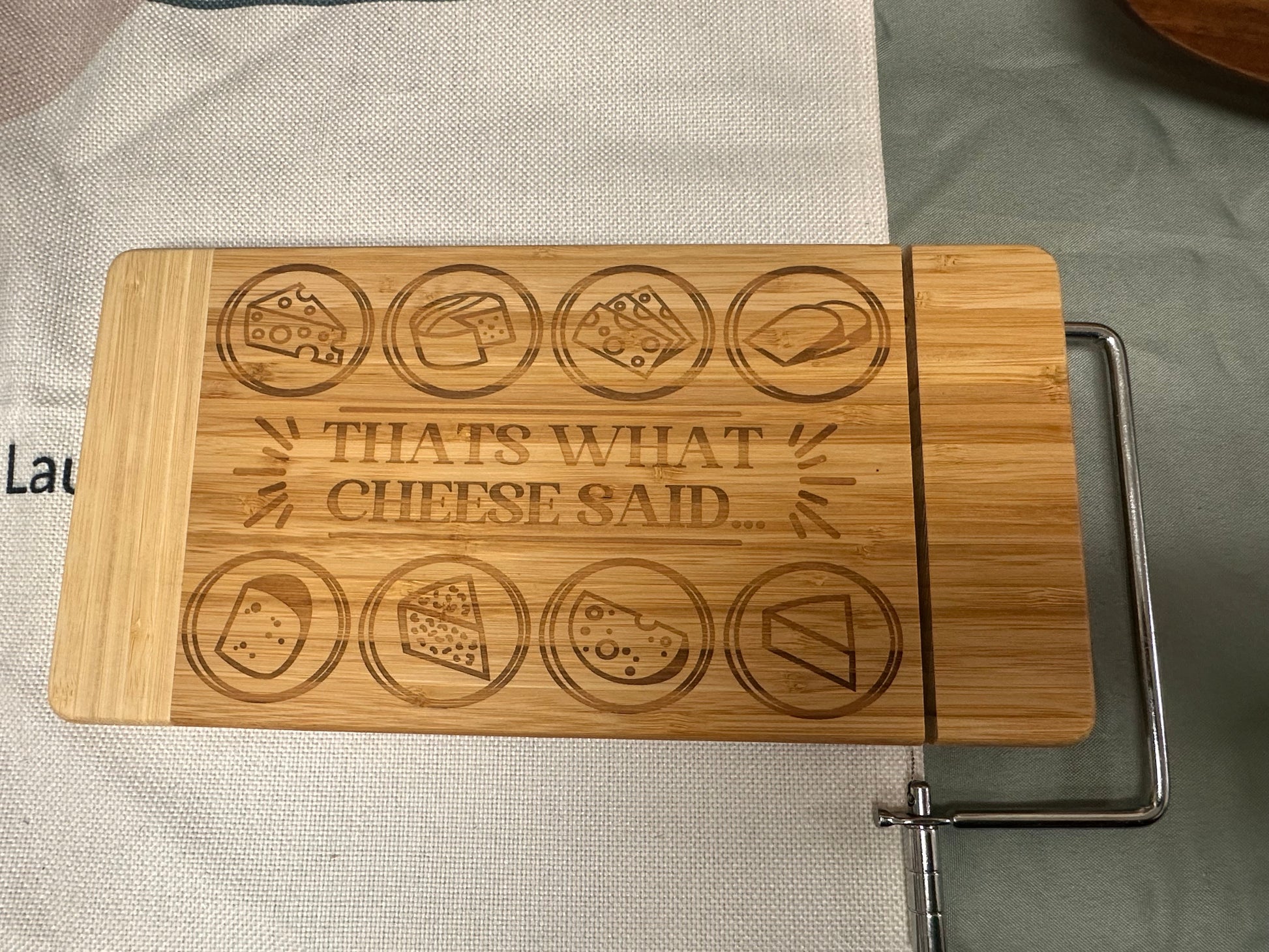 Crafted for durability, it includes a built-in cheese cutter for seamless slicing and serving. The smooth surface offers an ideal presentation for your favorite cheeses, while the engraving adds a sophisticated touch to any gathering. Perfect for entertaining, this board combines functionality and style, enhancing your hosting experience with ease and expert craftsmanship.