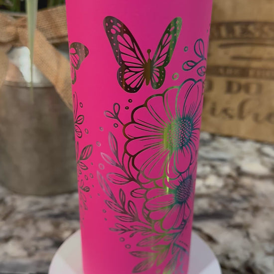 COURAGE BREAST CANCER RIBBON 20 oz Stainless Steel Tumbler- Rainbow Plated, Double Walled Vacuum Insulated