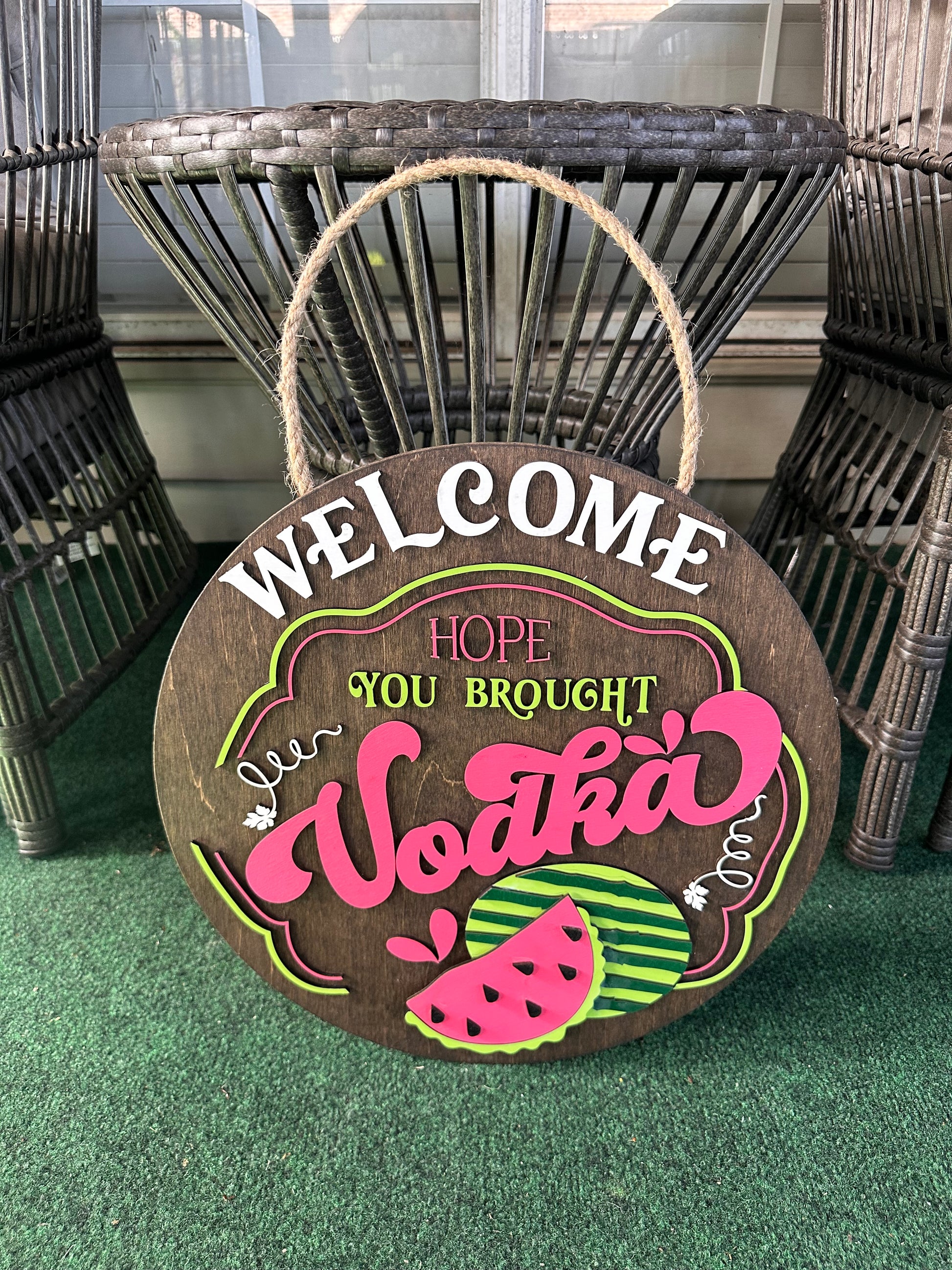 WELCOME HOPE YOU BROUGHT VODKA DOOR HANGER