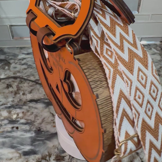 The Pumpkin Wood Purse showcases expert craftsmanship through its intricately carved pumpkin shape, blending natural wood durability with seasonal charm. This unique accessory offers a structured, lightweight design that stands out while providing practical storage. Perfect for those who appreciate detailed artistry and distinctive style, it adds an elegant, nature-inspired touch to any outfit.
