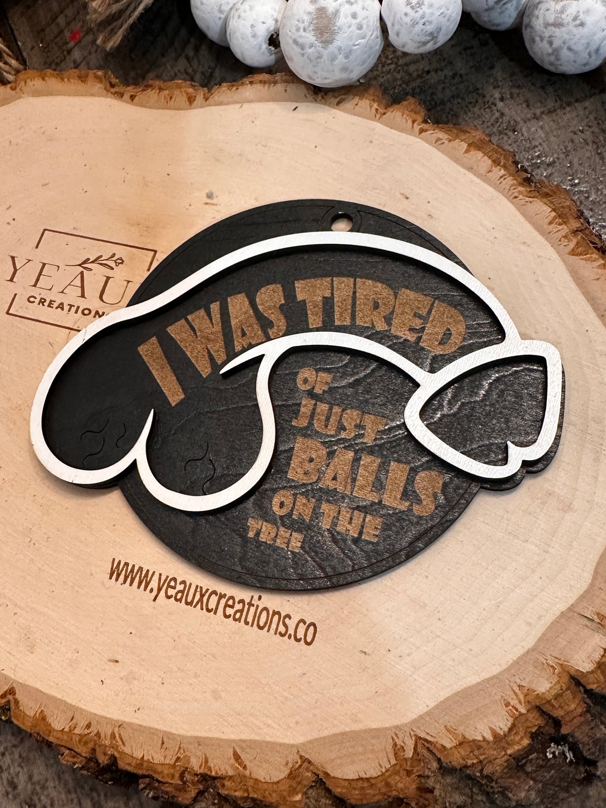 Add a cheeky twist to your holiday décor with these sarcastic wood ornaments. Expertly carved from quality wood, the Penis Ornament combines humor with handcrafted detail, making it a bold conversation starter. Perfect for those who appreciate witty, unconventional decorations that blend craftsmanship with playful irreverence.