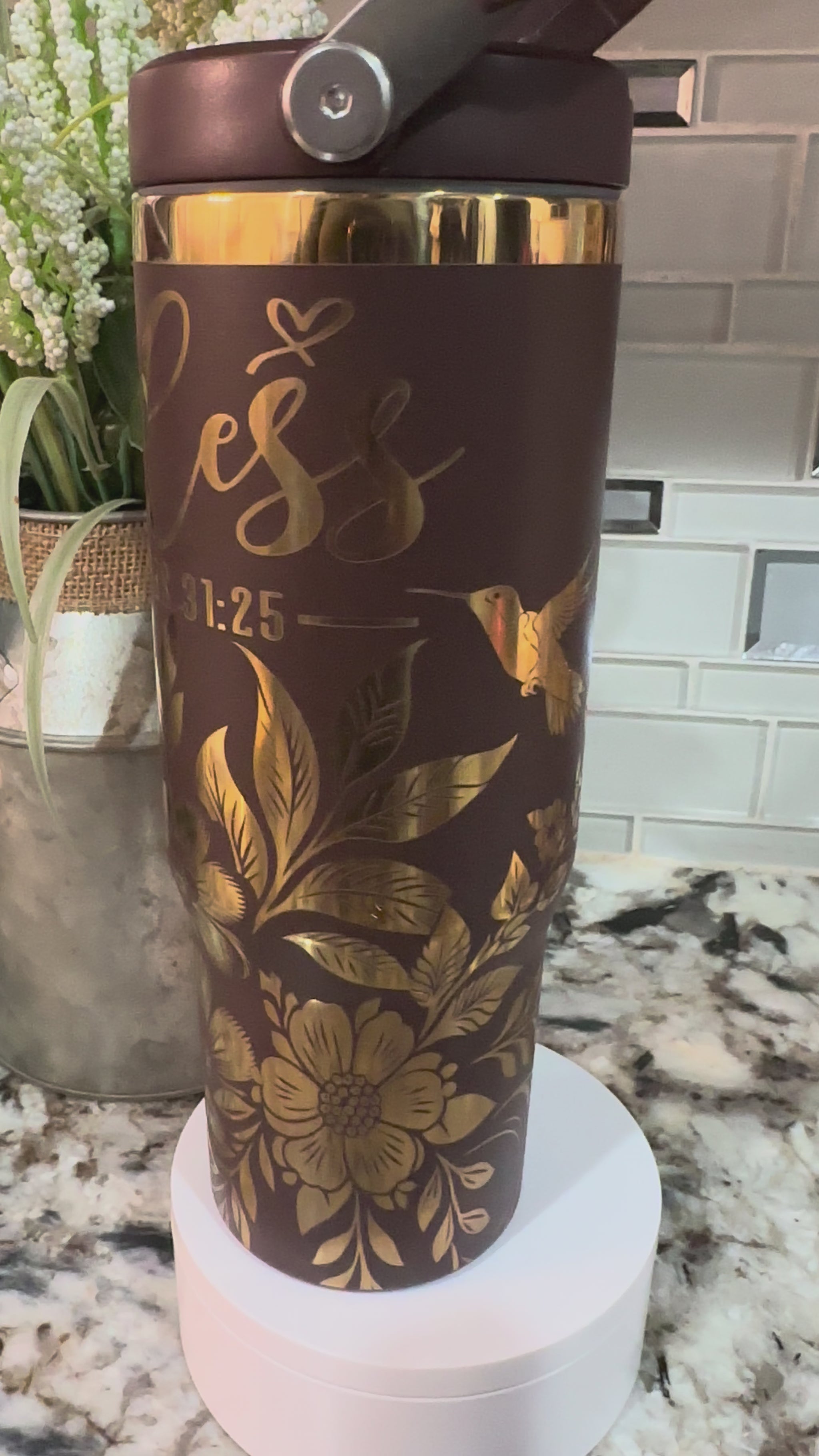 SHE IS FEARLESS 30 oz Stainless Steel TUMBLER- GOLD Plated, Double Walled Vacuum Insulated