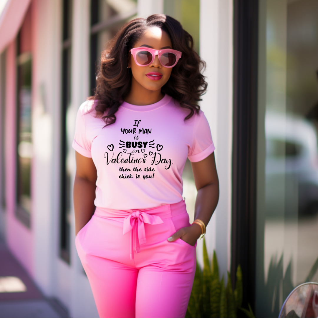 Single Color Screen Print - IF YOUR MAN IS BUSY ON VALENTINES DAY