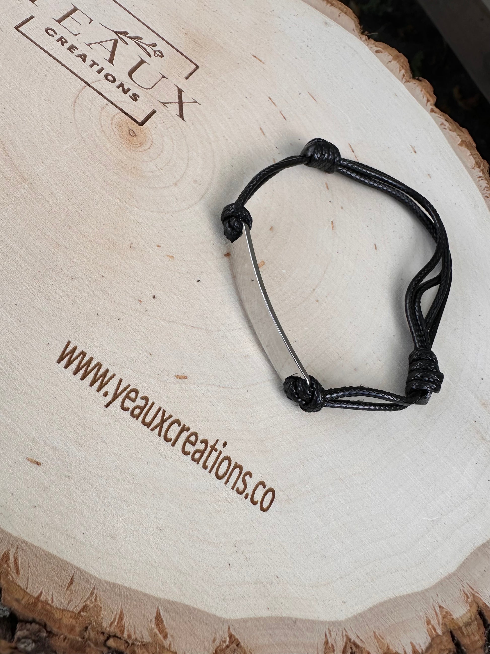 Elevate your style with this durable cord bracelet featuring a sleek stainless steel plate designed for personalized engraving. Crafted for both comfort and resilience, the adjustable cord ensures a secure fit while allowing you to customize the plate with meaningful text or initials. This bracelet combines minimalist design with personalized elegance, making it a versatile accessory suitable for everyday wear or as a thoughtful gift.